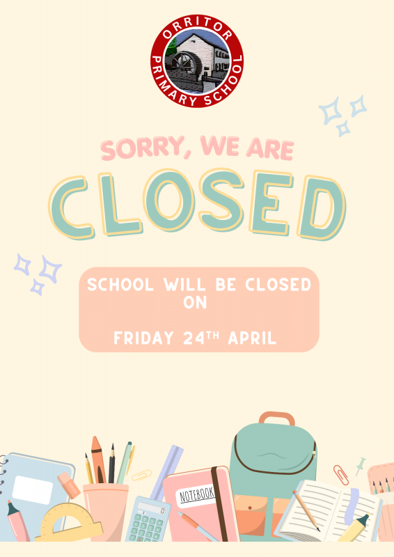 This is a reminder that school will be closed on Friday 24th April to allow for staff training. There will be no pupils in attendance on this day. School will reopen as normal on Monday 27th April [